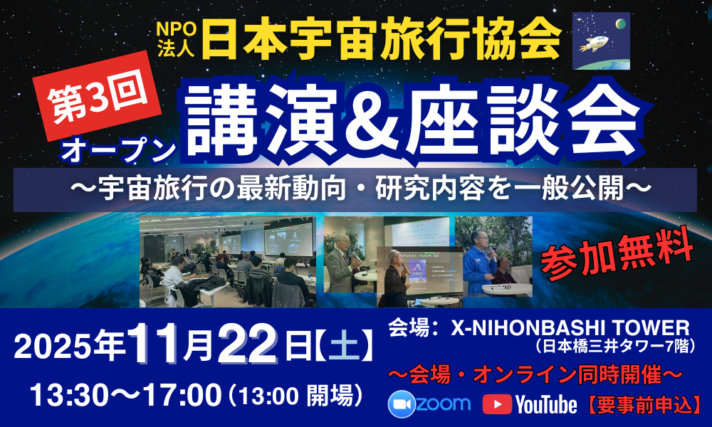 NEW2025年11月22日 NPO 法人 日本宇宙旅行協会 講演&座談会イベント