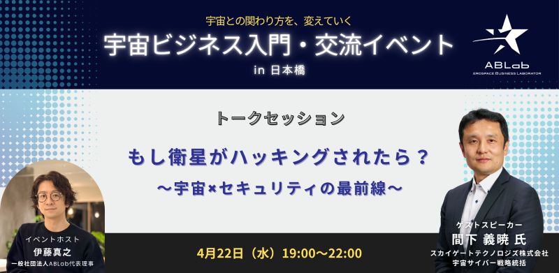 当イベントは、宇宙ビジネスに関心を持つ人が集う交流イベントです。宇宙ビジネスの実践コミュニティ「ABLab」が運営し、宇宙の仲間作りを後押ししています。トークセッションでは、宇宙関連のゲストを招き、ABLab代表の伊藤との対談をお届けします。
