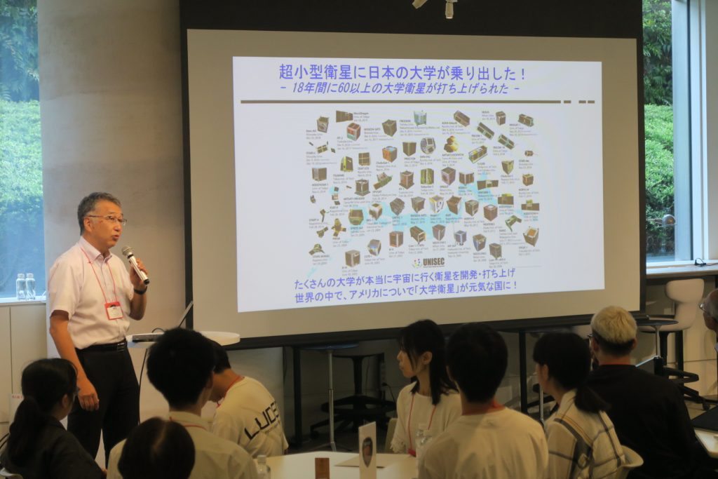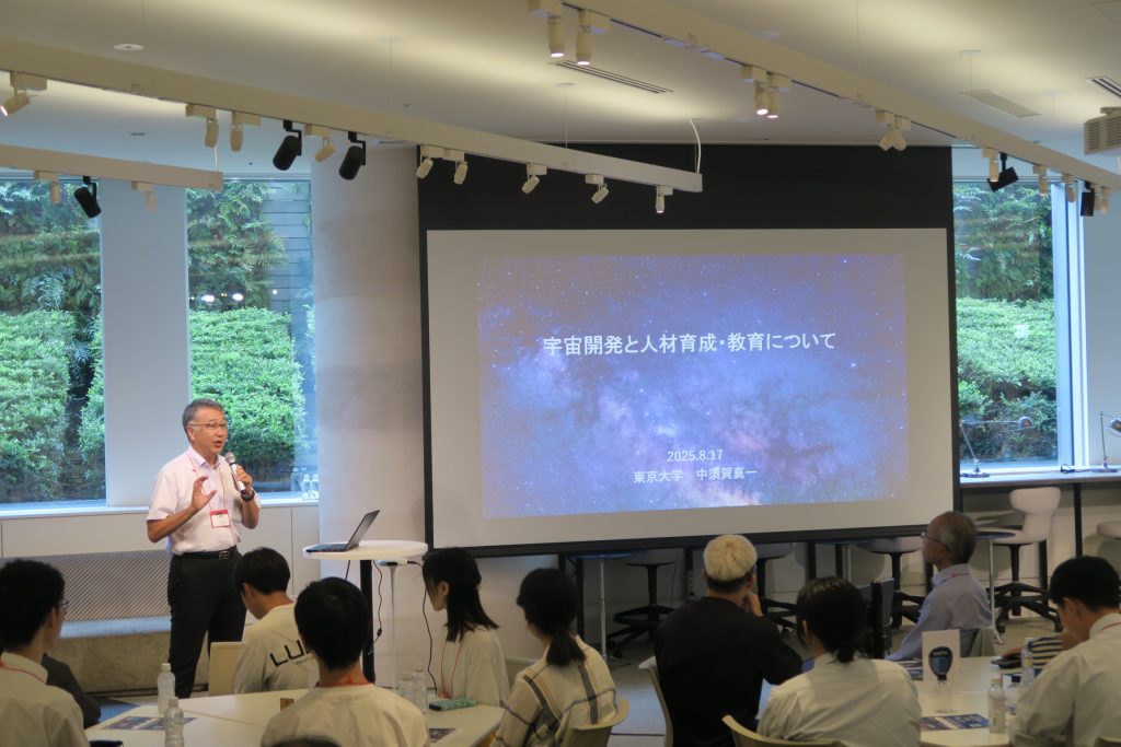 続いて、宇東京大学大学院工学系研究科 中須賀教授による、「宇宙開発と人材育成・教育について」と題した基調講演をいただきました。「宇宙分野・好きなことで活躍するのはどんな人材か」とその育成の方法について、経験をもとにお話しいただきました。