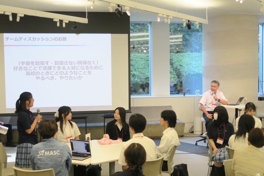 パネルディスカッションの最後には、チームディスカッションとして『好きなことで活躍できる人材になるために高校のときにどのようなことをやるべき、やりたいか』をテーマに、現地参加者にて自由にディスカッションをし、各チームによる発表、質疑応答を行いました。